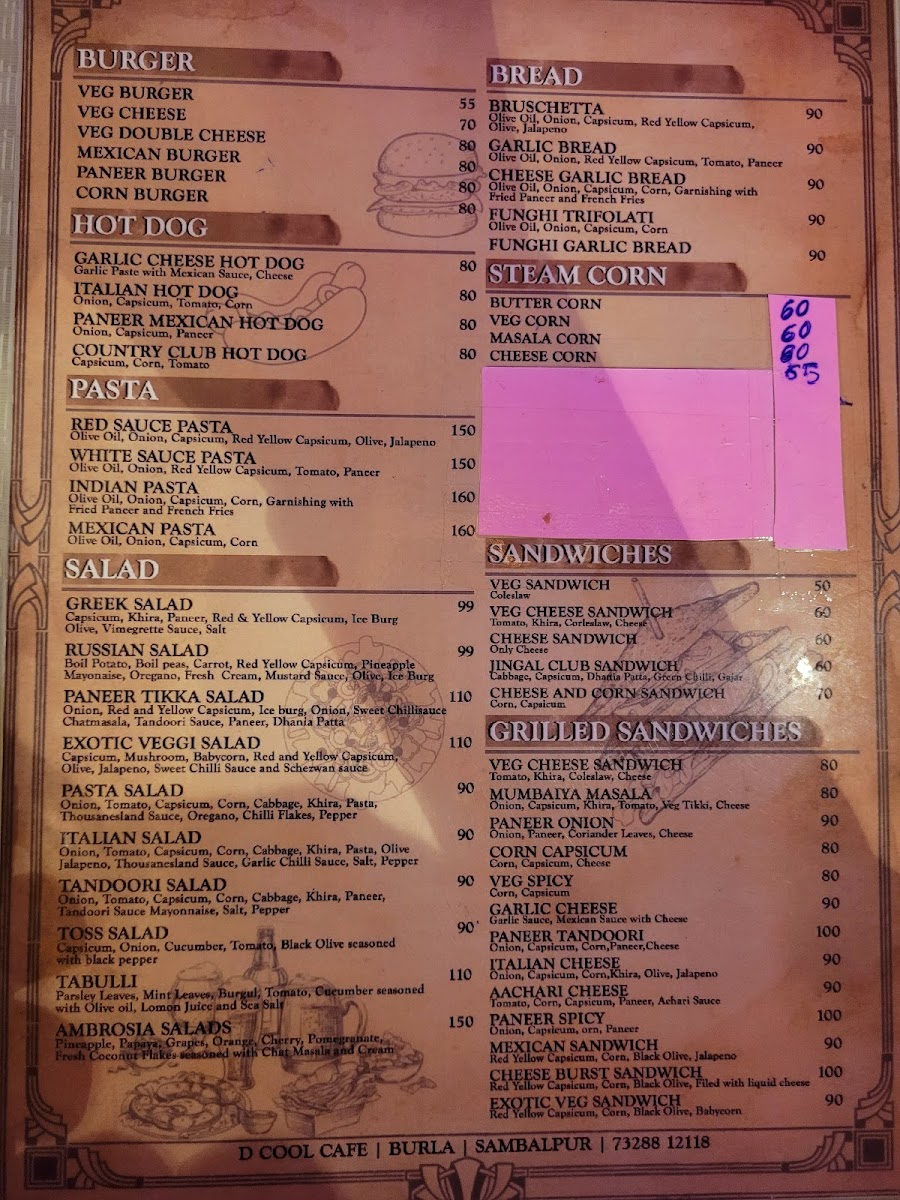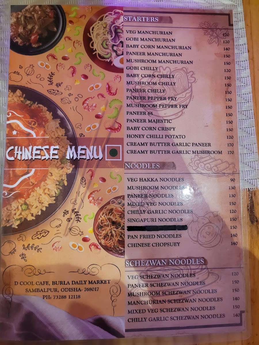 Welcome to D Cool Cafe, an inviting culinary haven nestled in Burla, Odisha. This charming cafe offers an extensive menu, perfect for food enthusiasts seeking flavorful options that cater to various preferences.